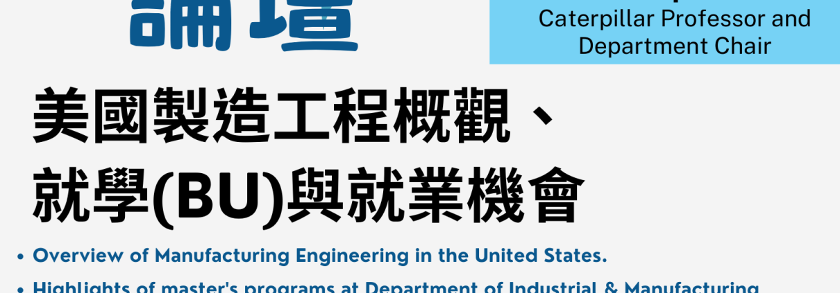 講座題目:美國製造工程概觀、就學(BU)與就業機會