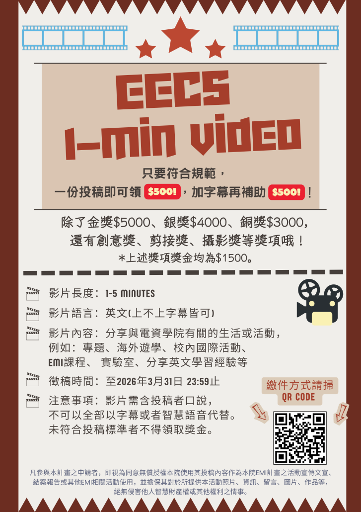 EECS 1-min video 徵稿中!